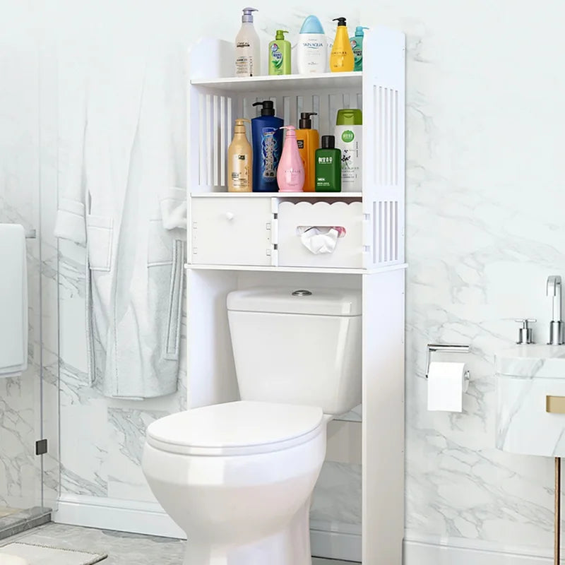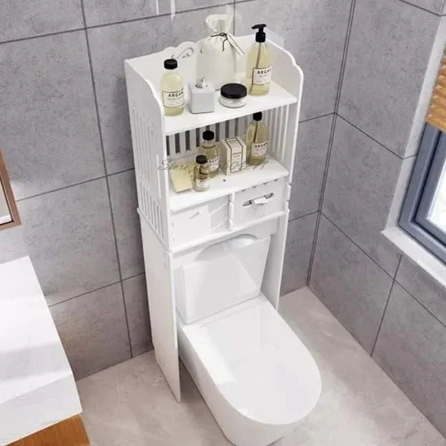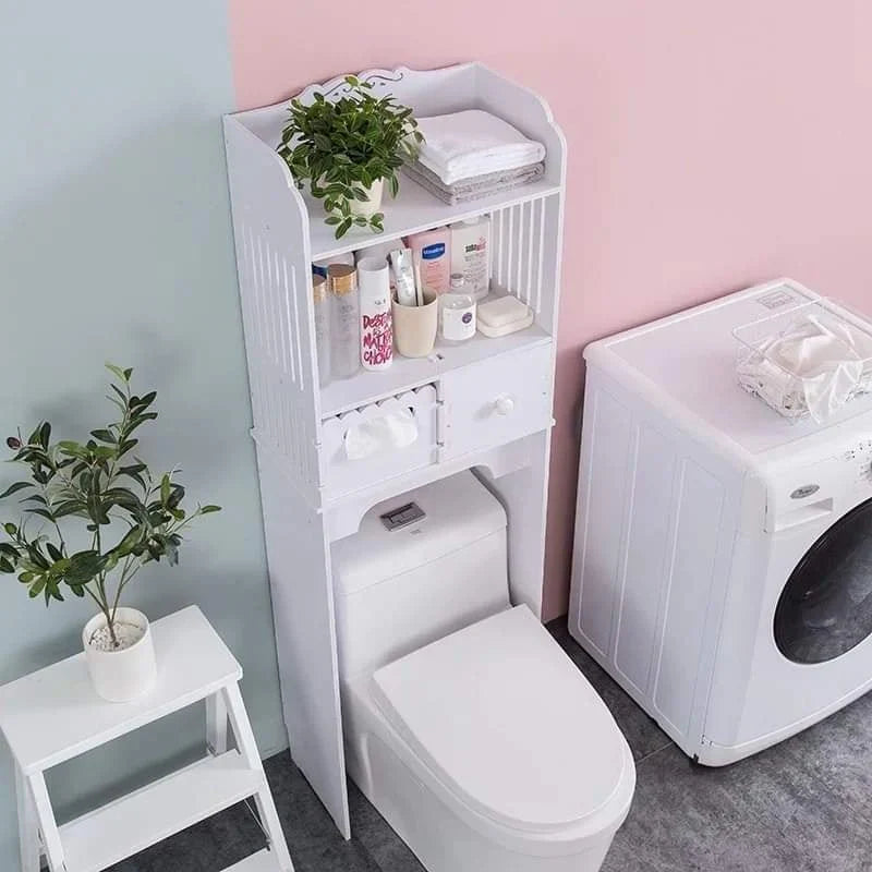 Com um design vertical e multifuncional, ele se encaixa perfeitamente sobre o vaso sanitário, criando novos níveis de organização para toalhas, cosméticos, papel higiênico, produtos de limpeza e muito mais.