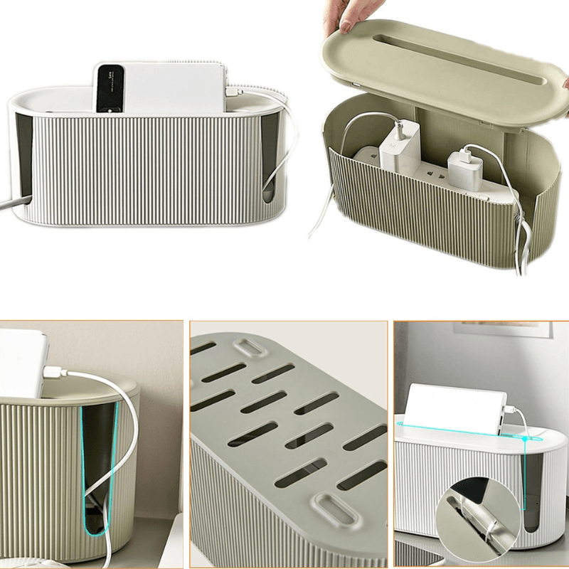 Sua estética simples e contemporânea não apenas organiza seus cabos, mas também complementa a decoração do ambiente.