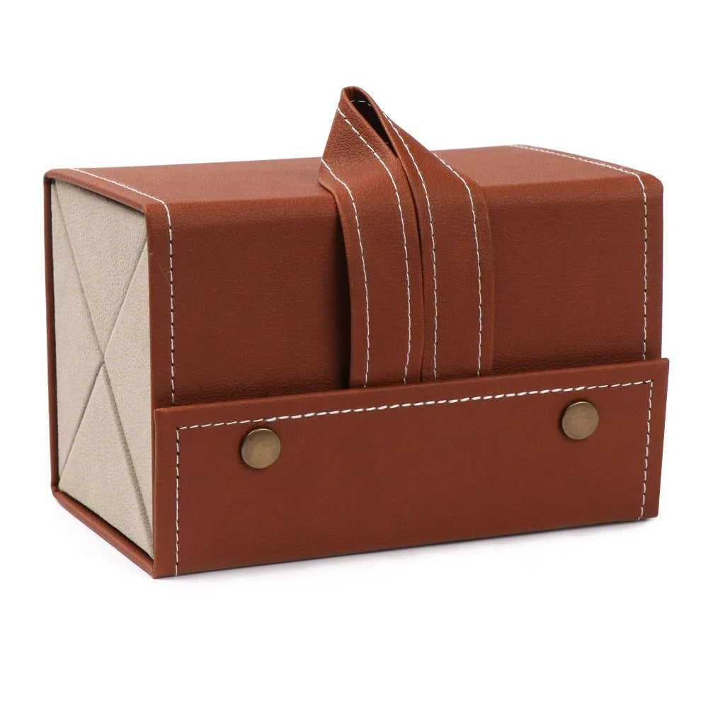 Fabricado em couro PU de excelente durabilidade e acabamento luxuoso, o estojo combina proteção e estilo com um design moderno e sofisticado, garantindo que seus óculos estejam sempre seguros e acessíveis.