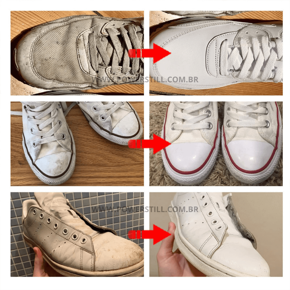 Nossa fórmula avançada é projetada para eliminar manchas amareladas e restaurar o branco original de seus tênis.